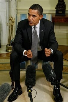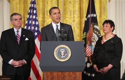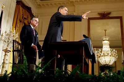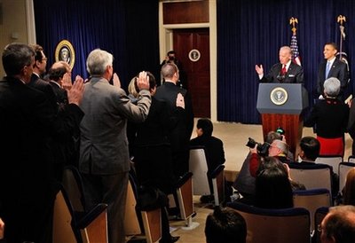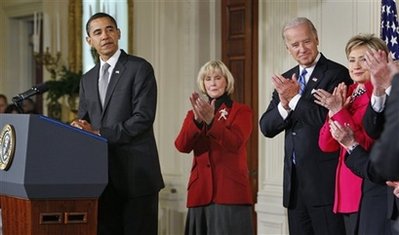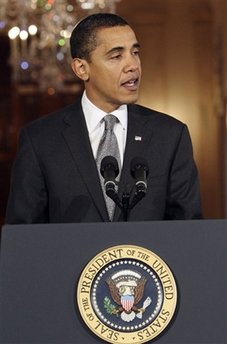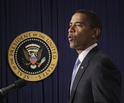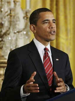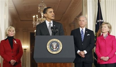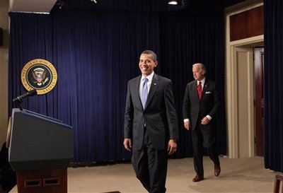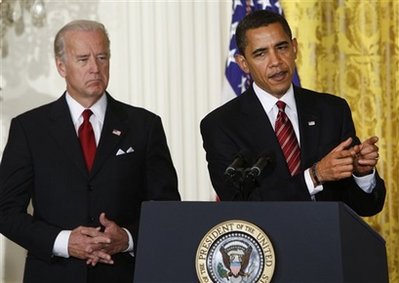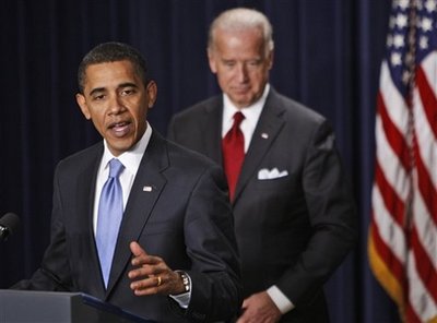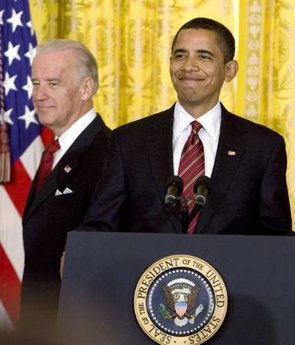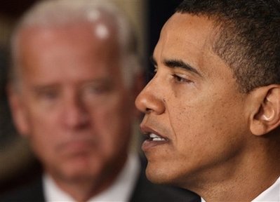 President Barack Obama, with Vice President Joseph Biden at his side,