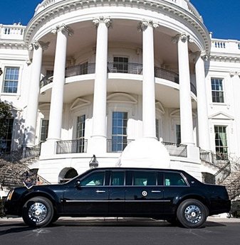 President Obama's limousine is parked at the front of the White House on