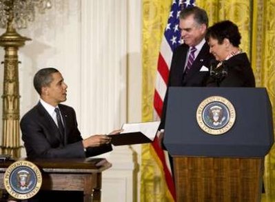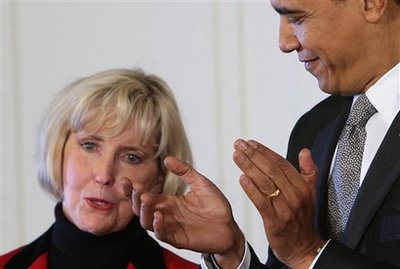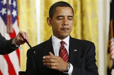 bill in her name (top left). President Barack Obama meets with the press