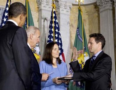 President Barack Obama attends the swearing in of Treasury Secretary