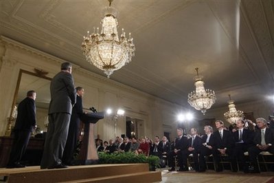 conference in the East Room of the White House (center and bottom).