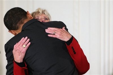 President Barack Obama and Secretary of State Hilary Clinton hold a