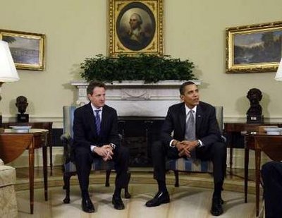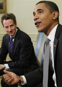 Secretary Timothy Geithner at his side, Obama was visibly upset with