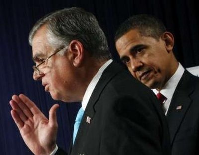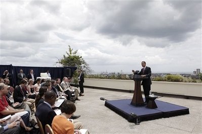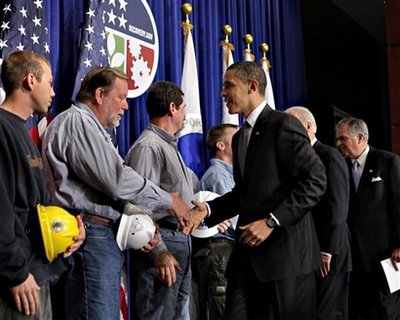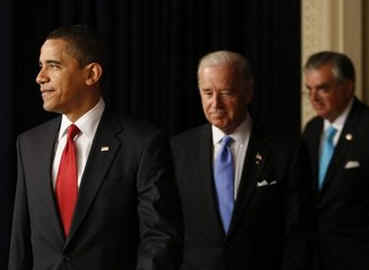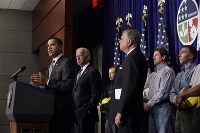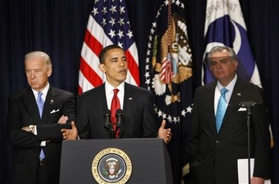 Obama was joined by Transportation Secretary Ray LaHood and Vice