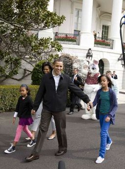 President Barack Obama and First Lady Michelle Obama attend an Easter