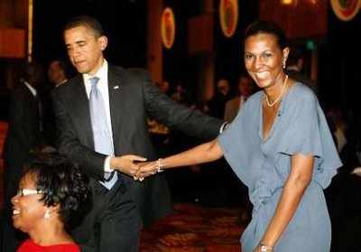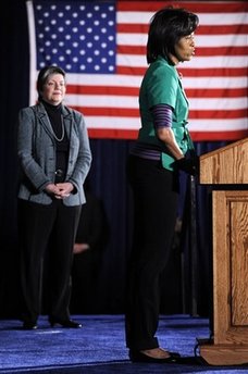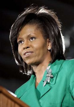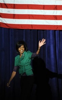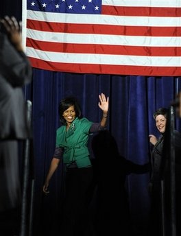 President Barack Obama and First Lady Michelle Obama speak to a crowd of