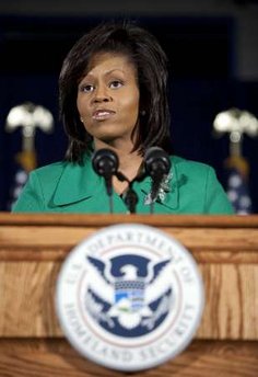First Lady Michelle Obama speaks at the Department of Homeland Security