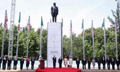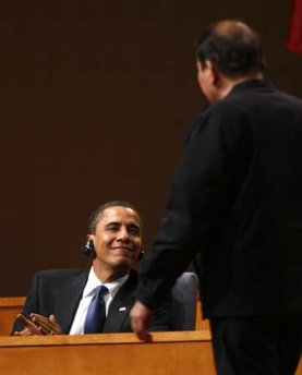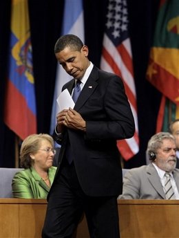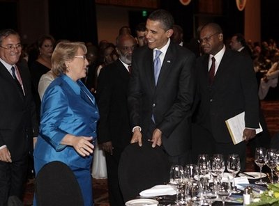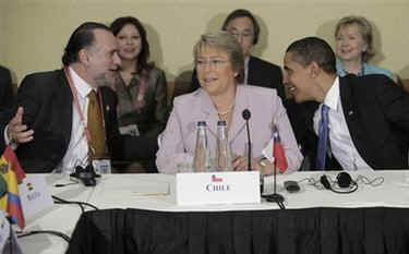 President Obama sat next to Chilean President Michelle Bachelet and the