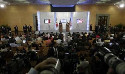 Haiti's President Rene Preval, Nicaragua's President Daniel Ortega, and