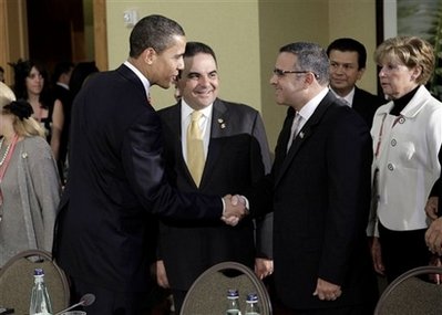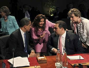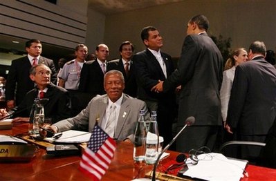 Tobago. President Obama sat next to El Salvador's President Tony Saca,