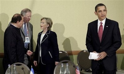 President Barack Obama and US Secretary of State Hillary Clinton meet
