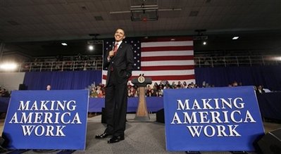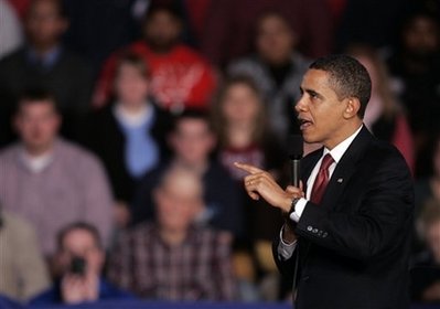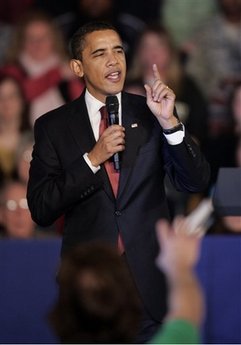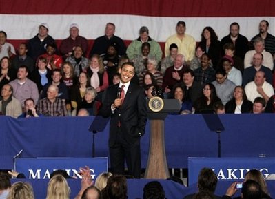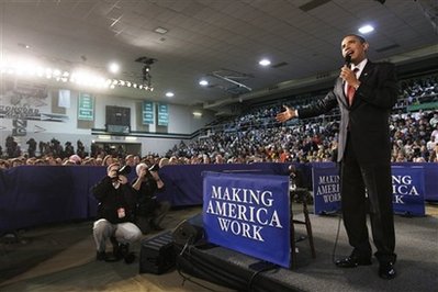 One and arrives in Elkhart, Indiana for a town hall meeting. |