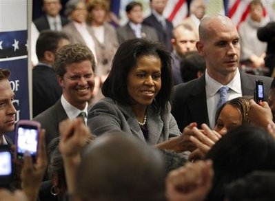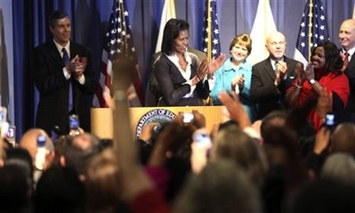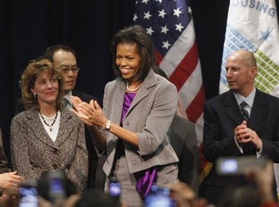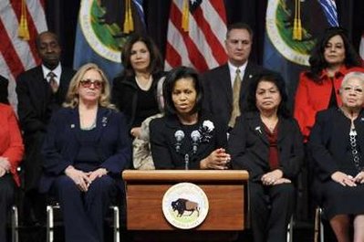 First Lady Michelle Obama speaks at the Department of the Interior.