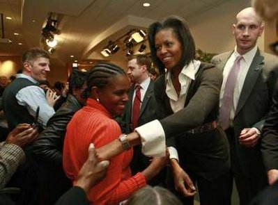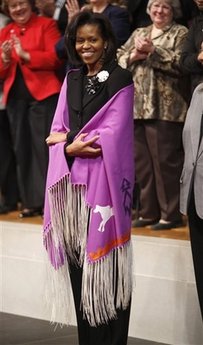 Michelle received a shawl from the Bureau of Indian Affairs. |
