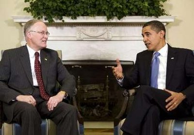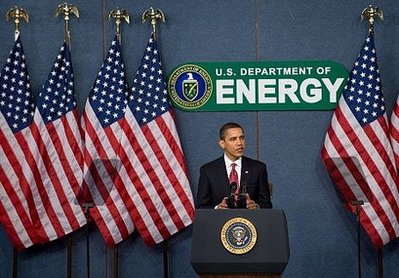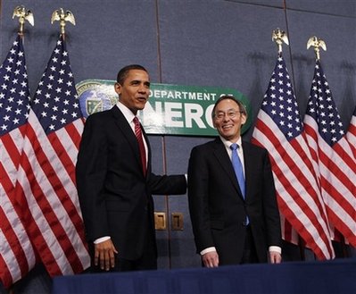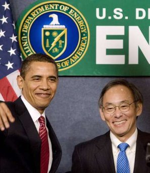 President Barack Obama visits Energy Secretary Stephen Chu and