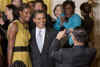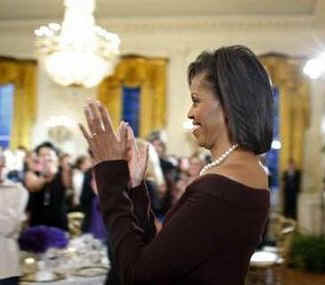 First Lady Michelle Obama hosts a dinner in the East Room of the