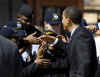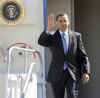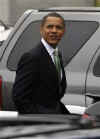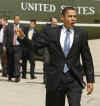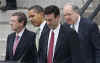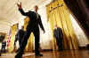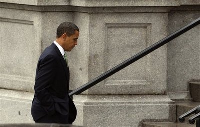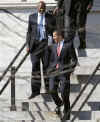 President Obama. led by a bagpiper, walks down the Capitol Hill stairs