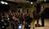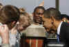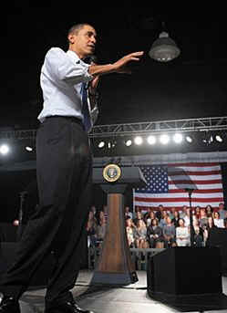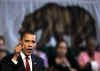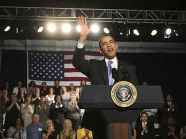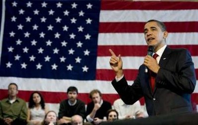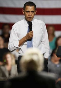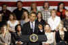 President Barack Obama speaks at a town hall meeting at the Miguel