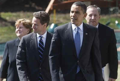 Geithner, and Senior Economic Advisers Summers and Romer. |
