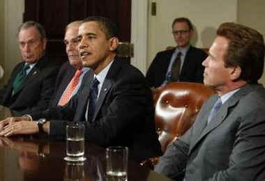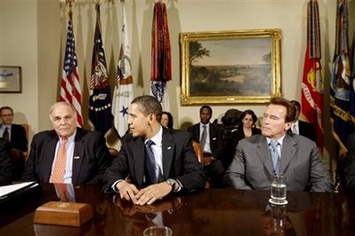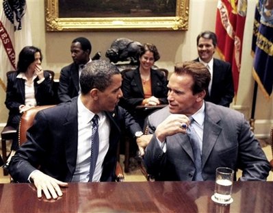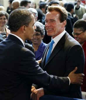 President Obama was joined by California Governor Arnold Schwarzenegger
