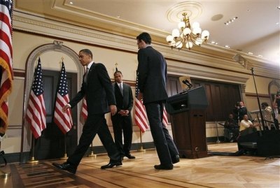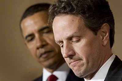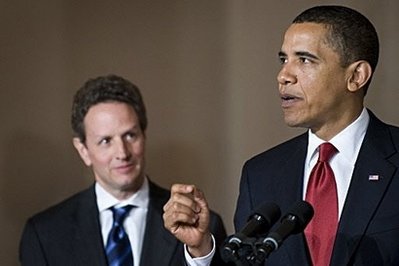President Barack Obama, US Treasury Secretary Timothy Geithner, and