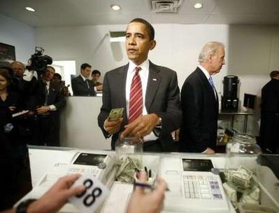 on May 5, 2009. Obama and Biden ordered cheeseburgers with Biden