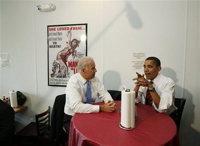 President Barack Obama and Vice President Joe Biden have lunch at Ray's