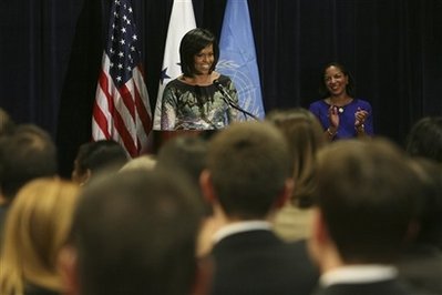 First Lady Michelle Obama speaks to employees of the United States
