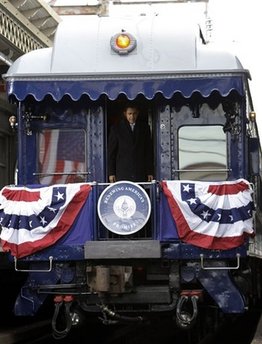 Barack Obama takes the same train journey as President Abraham Lincoln