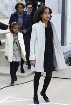 Barack, Michelle, Sasha, and Malia Obama, and Joe and Jill Biden attend