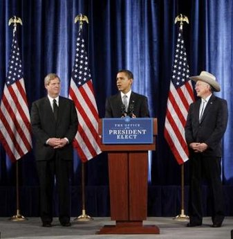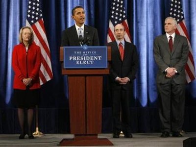 December 2008 Barack Obama solidifies his key staff and cabinet.
