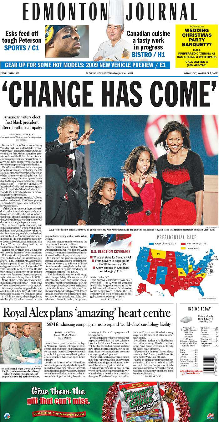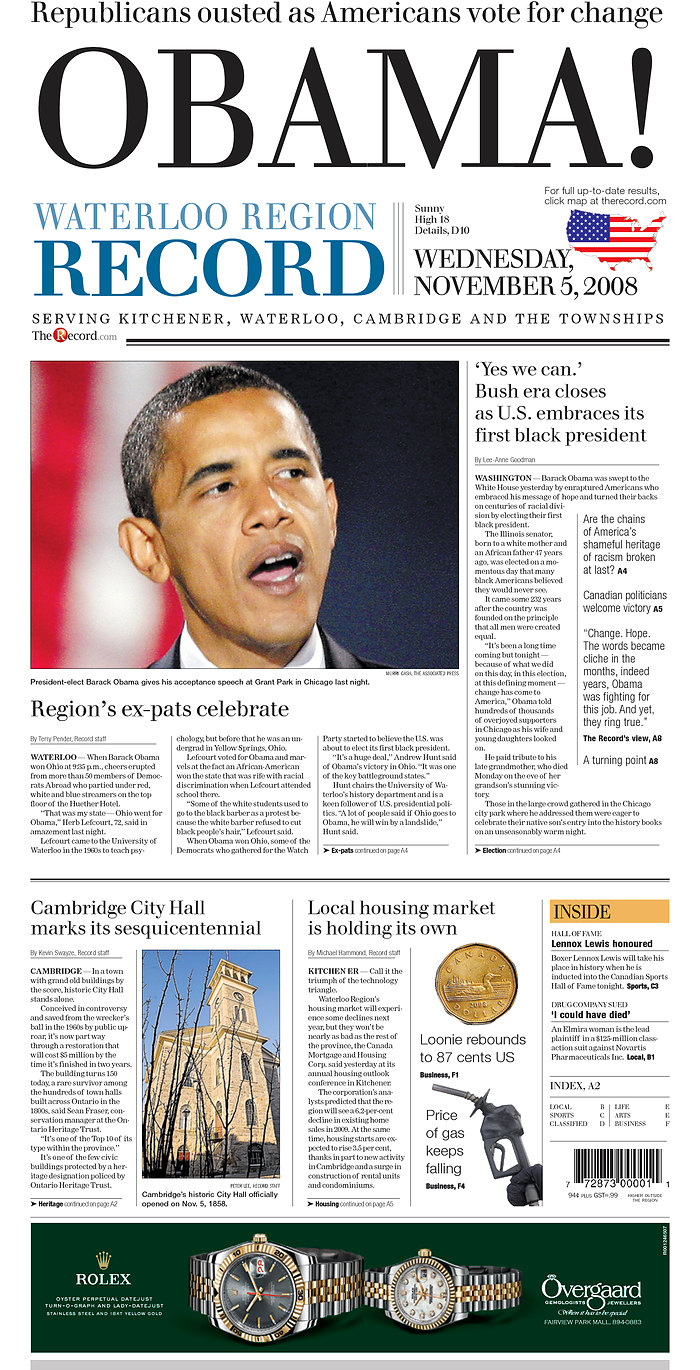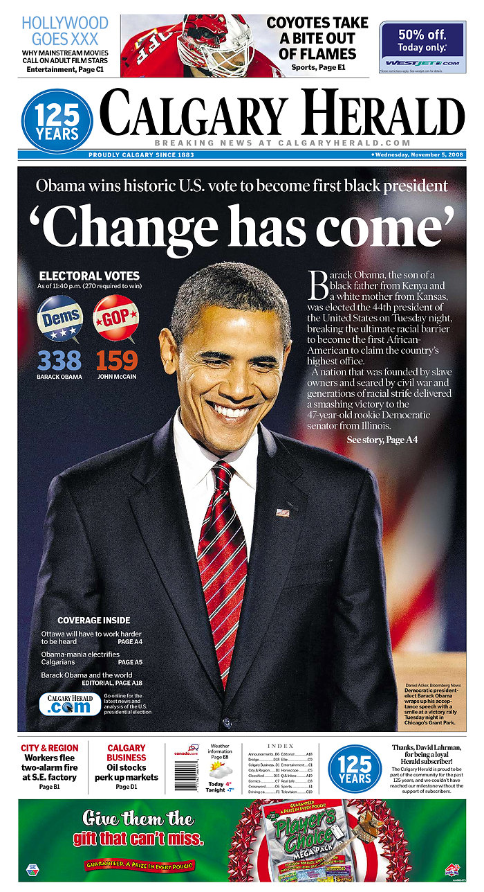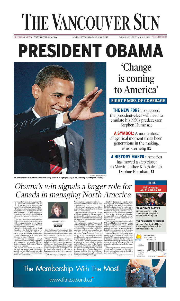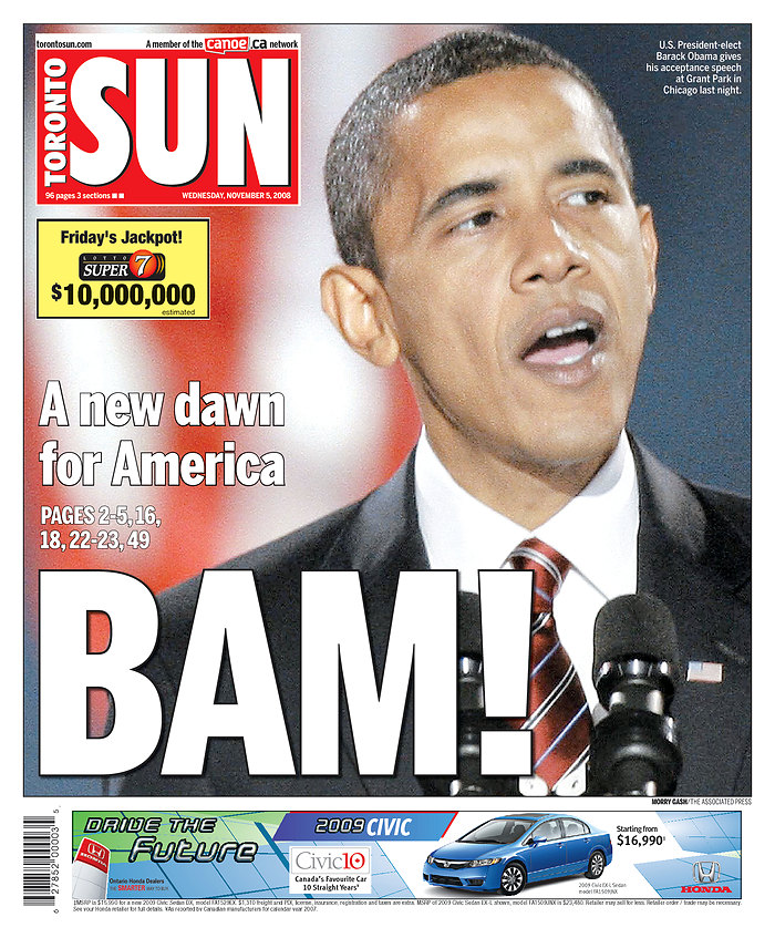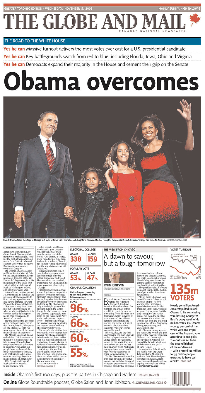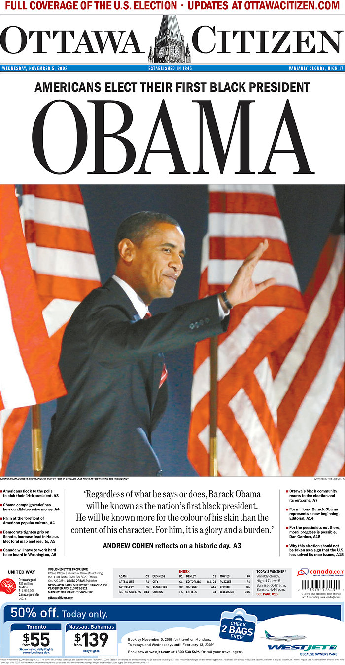 - President Obama and Canadian Newspaper Headlines - 11/4/08 &