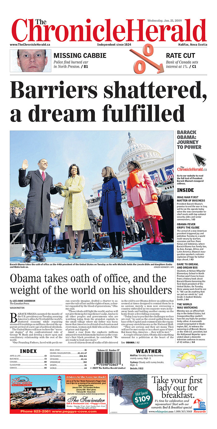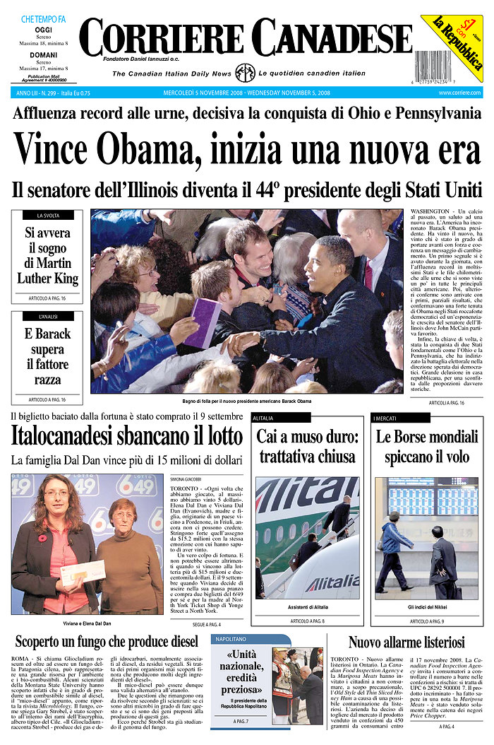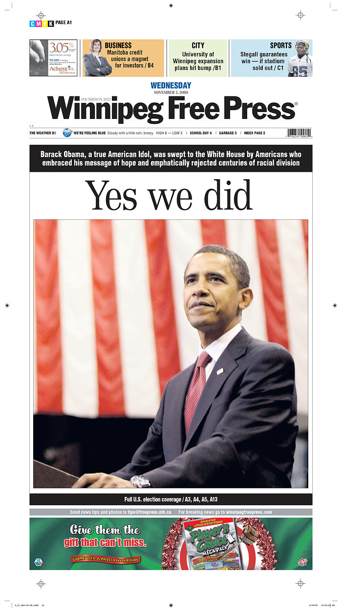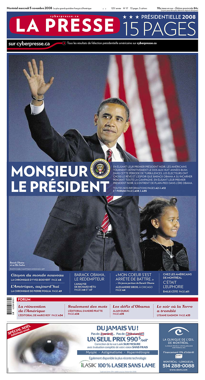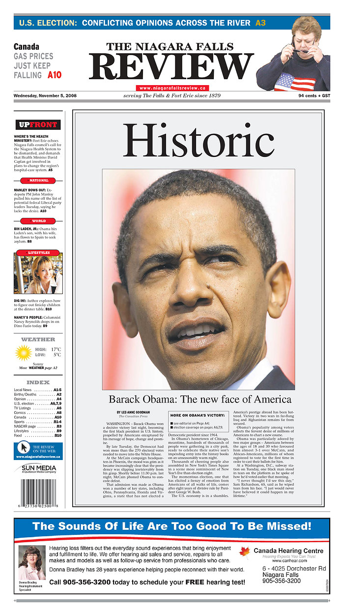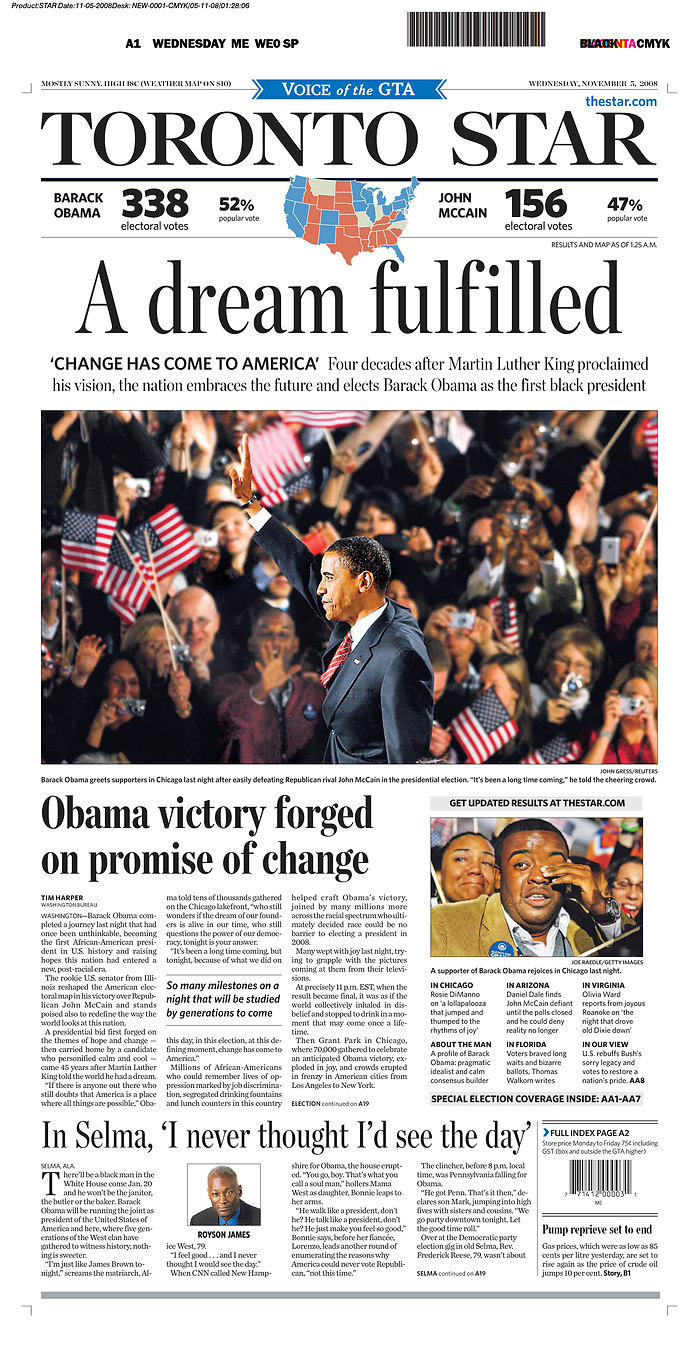 - President Obama and Canadian Newspaper Headlines - 11/4/08 &