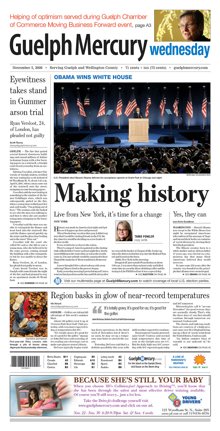 Canadian Newspaper Front Page Headlines From November 5, 2008