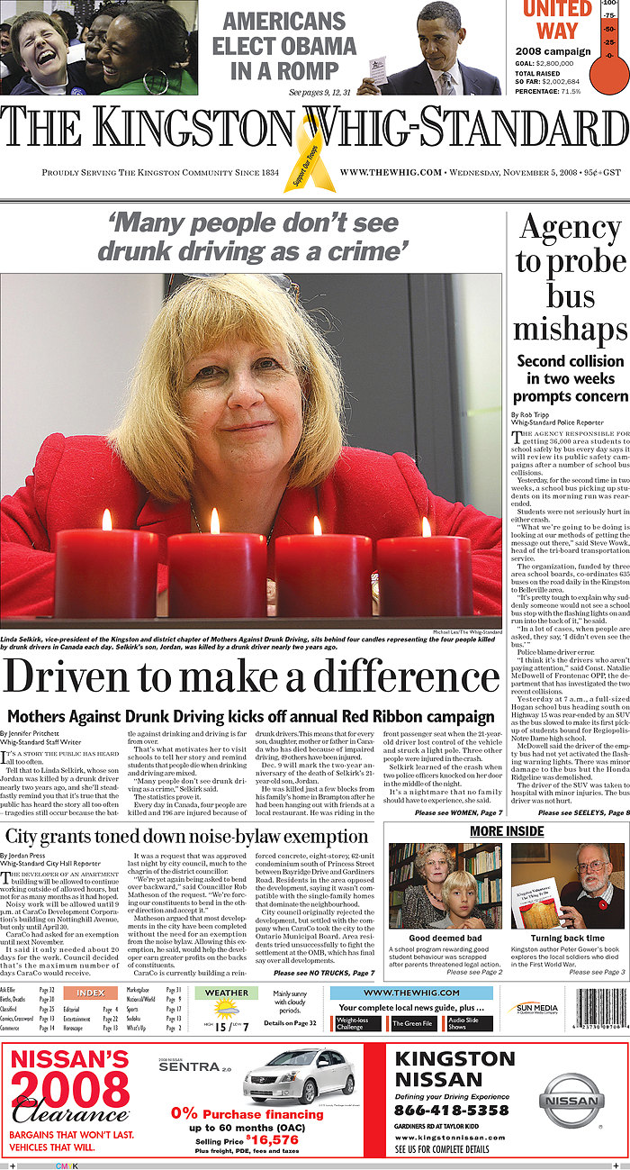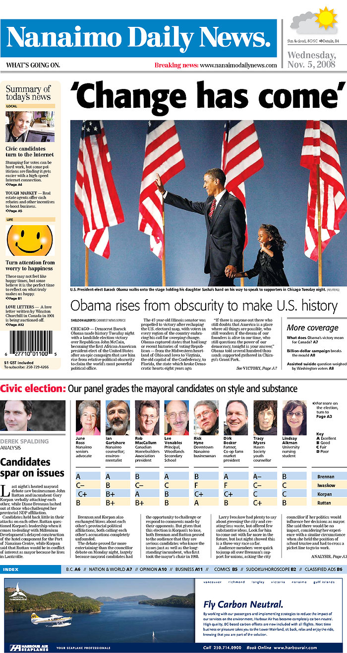 Canadian Newspaper Front Page Headlines: November 4, 2008