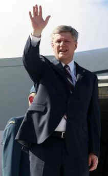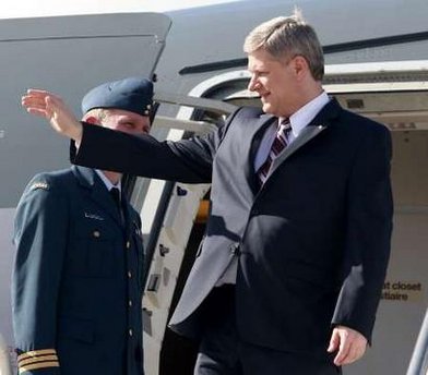 Canadian Prime Minister Stephen Harper waits on the tarmac in his