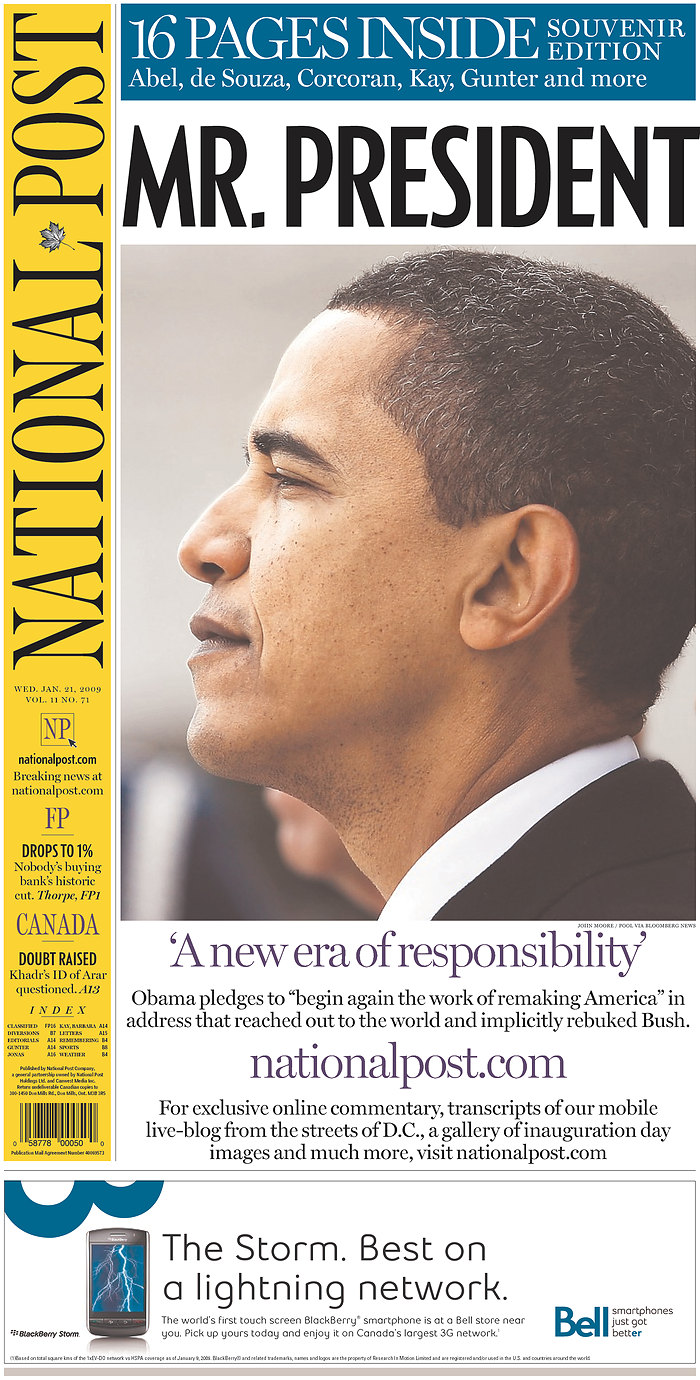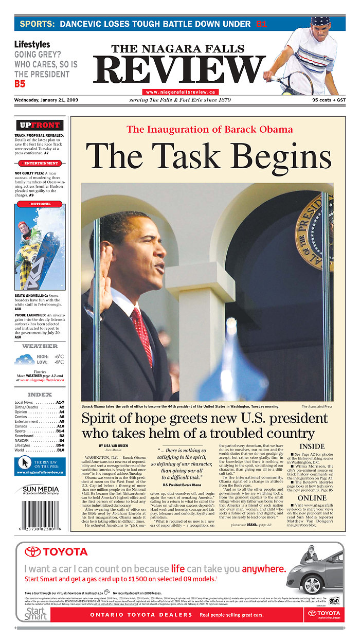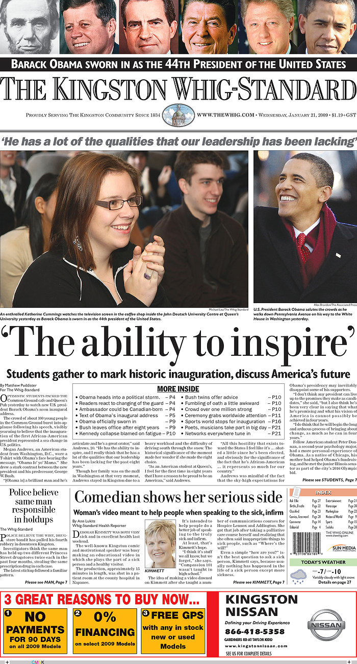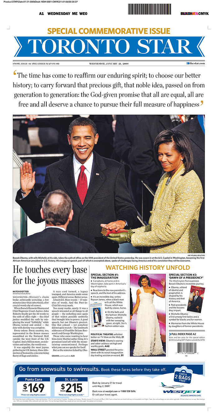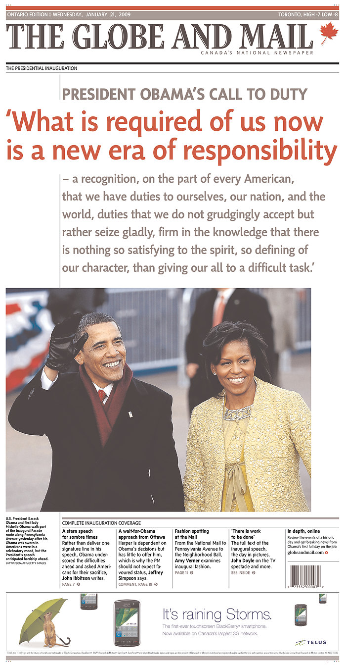 Canadian Newspaper Front Page Headlines From January 21, 2009