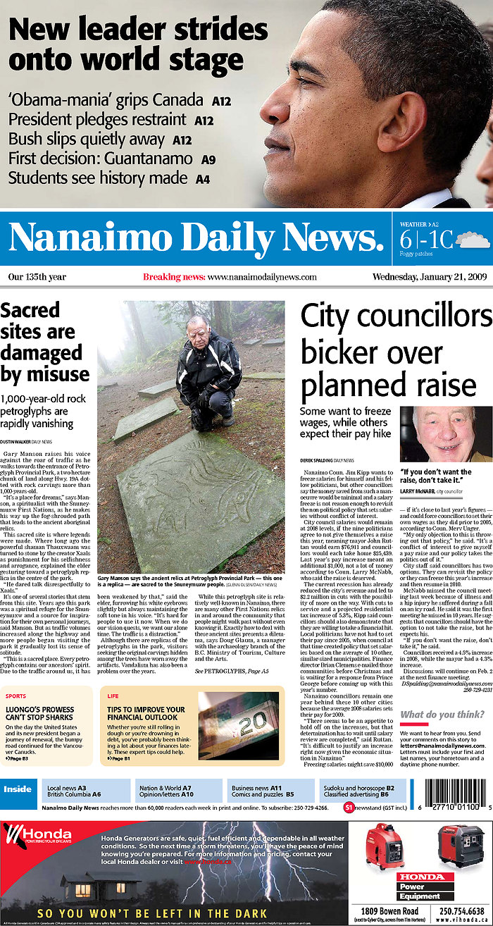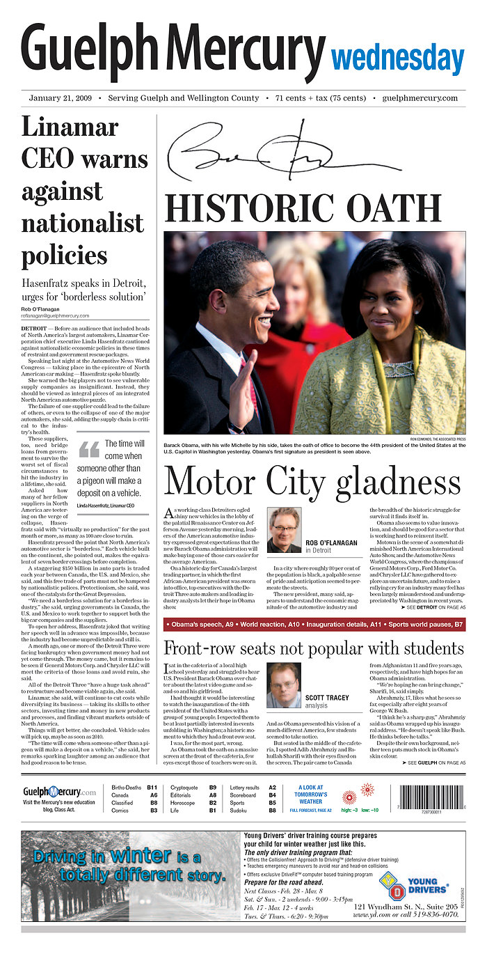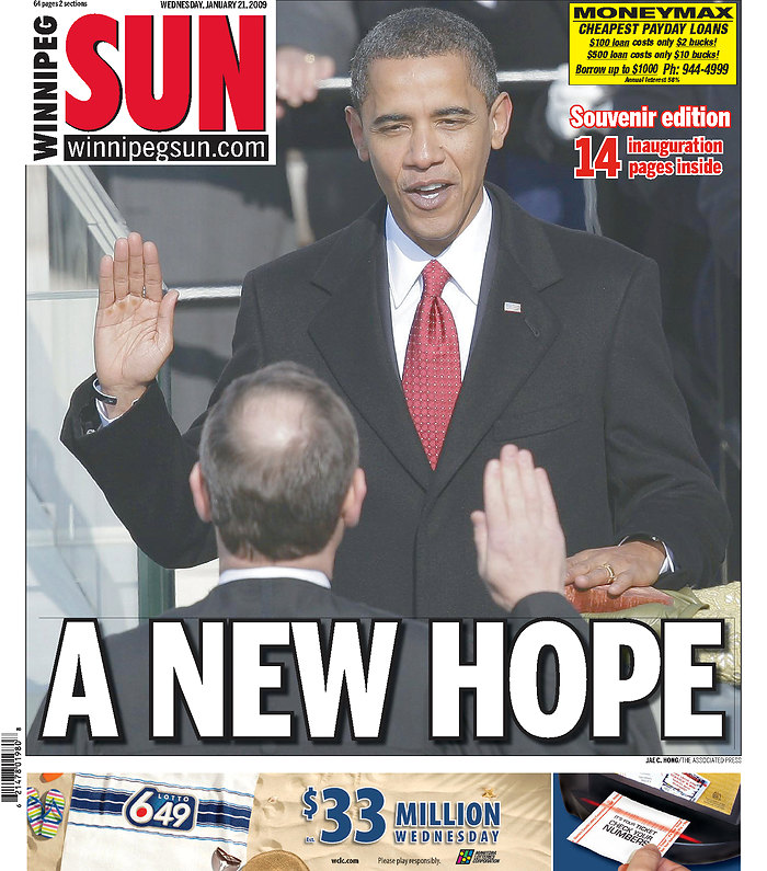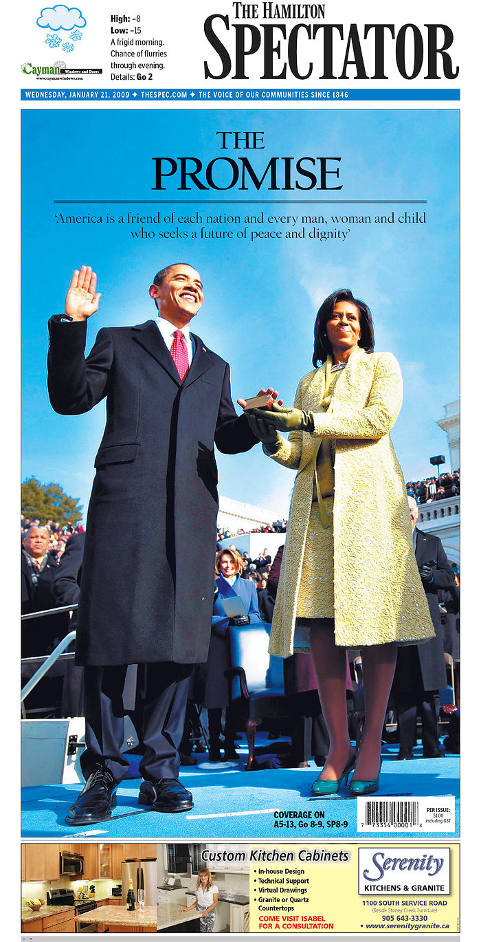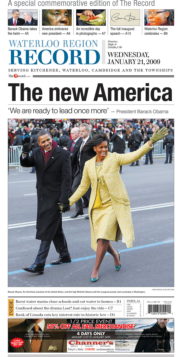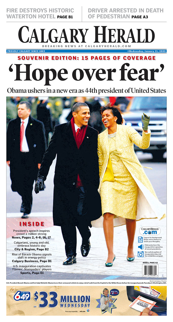 Canadian Newspaper Front Page Headlines From January 21, 2009