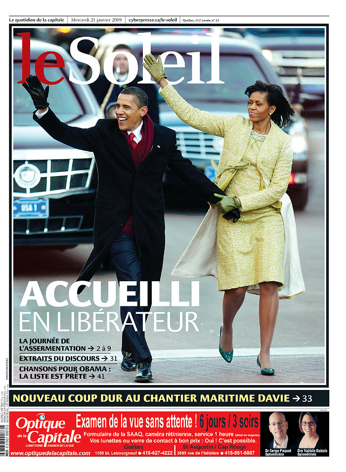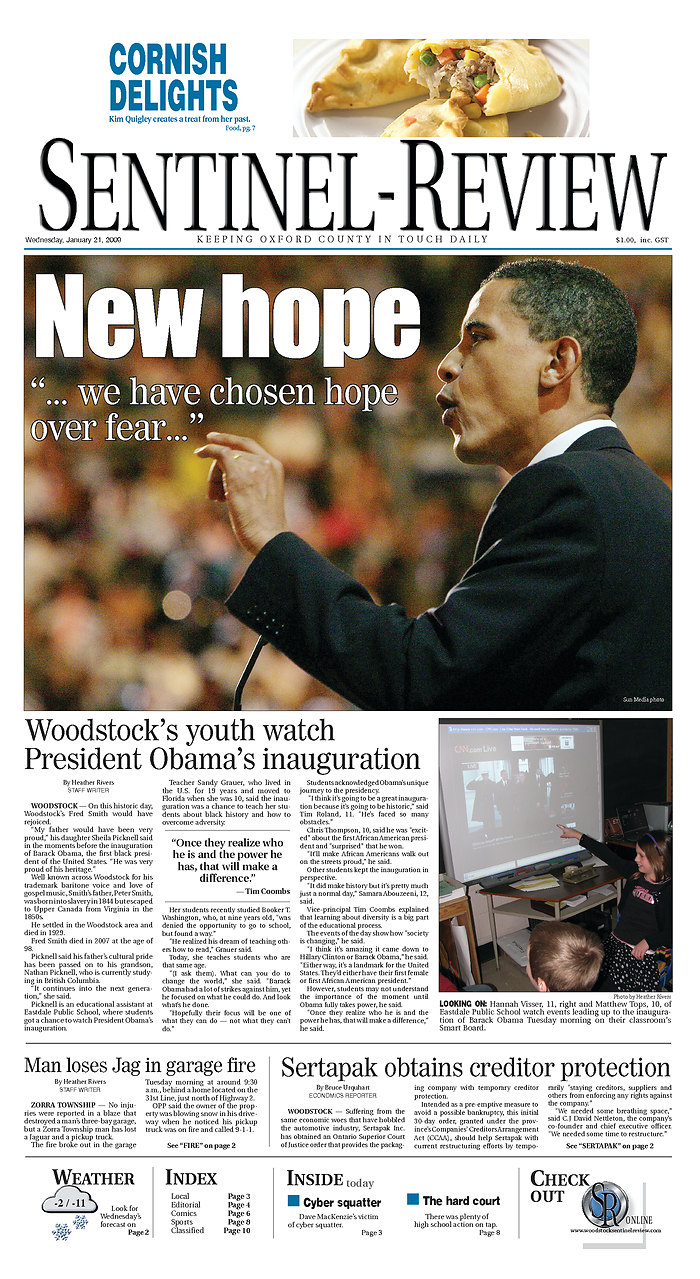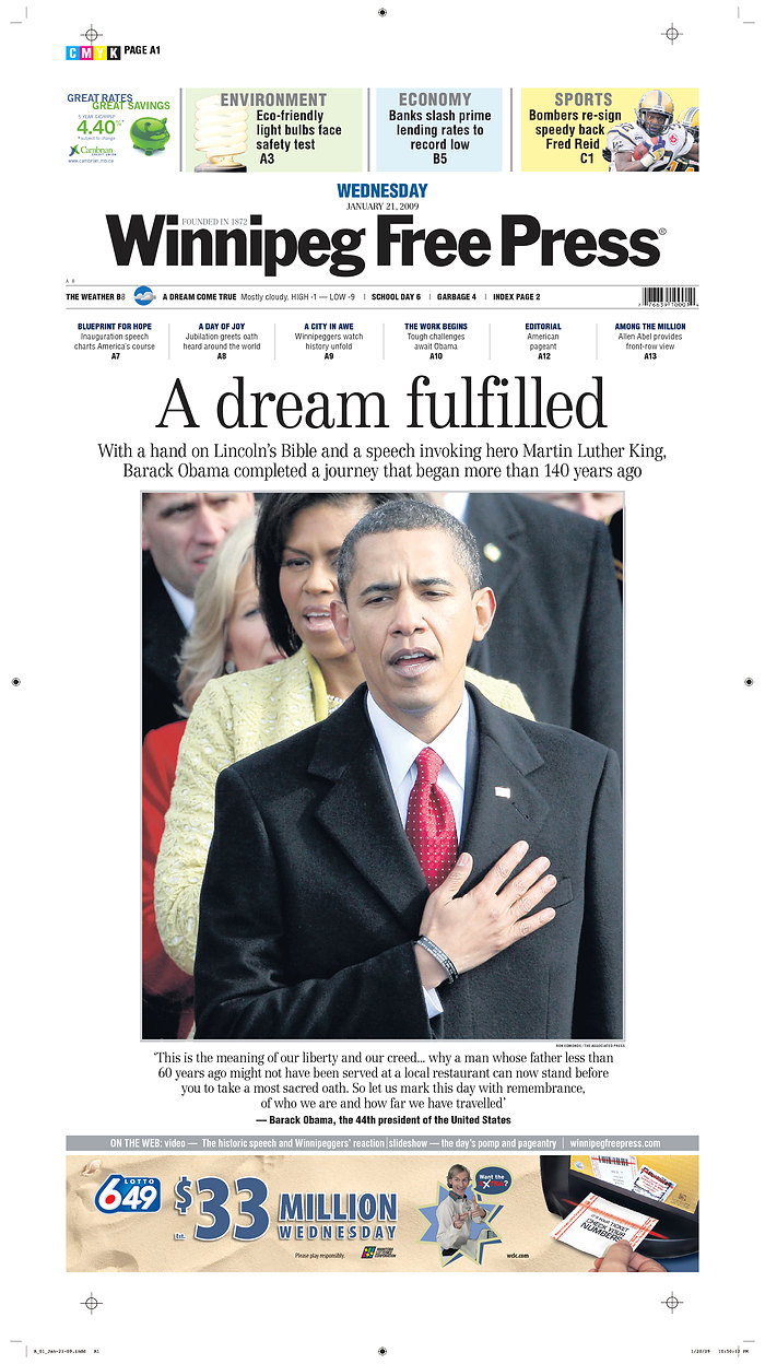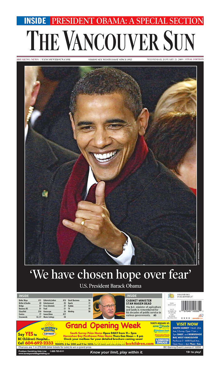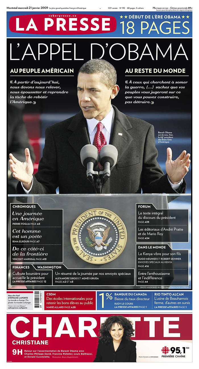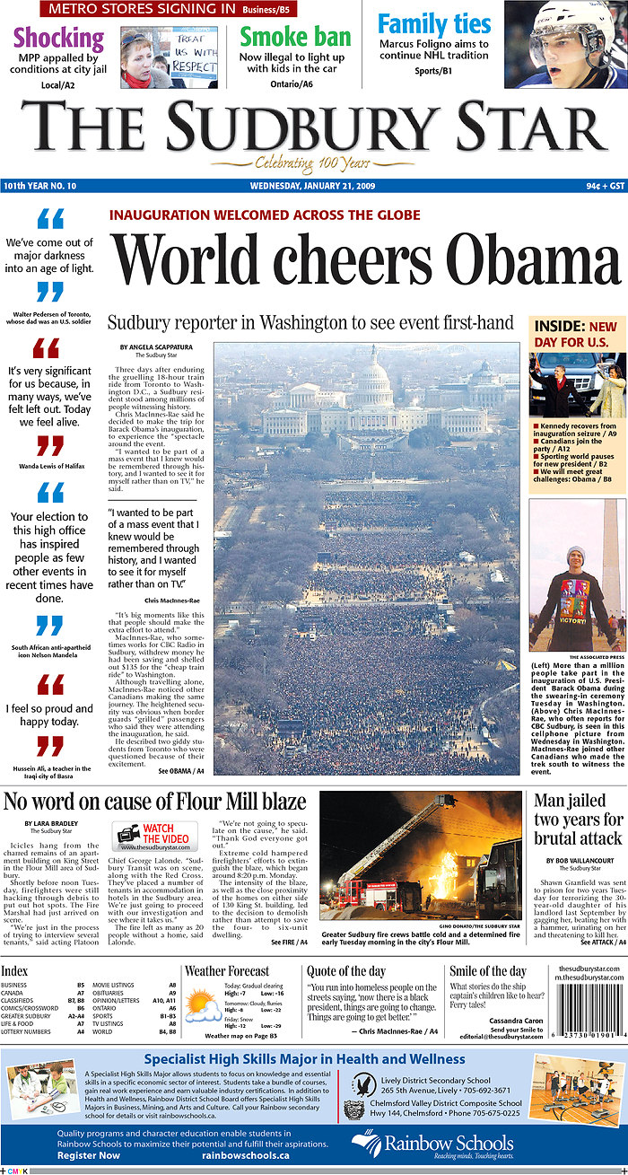 Canadian Newspaper Front Page Headlines From January 21, 2009