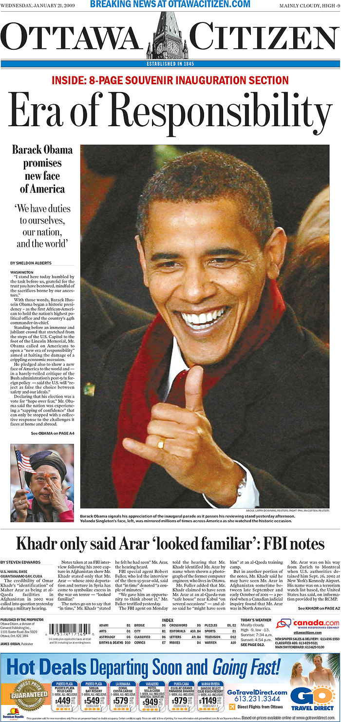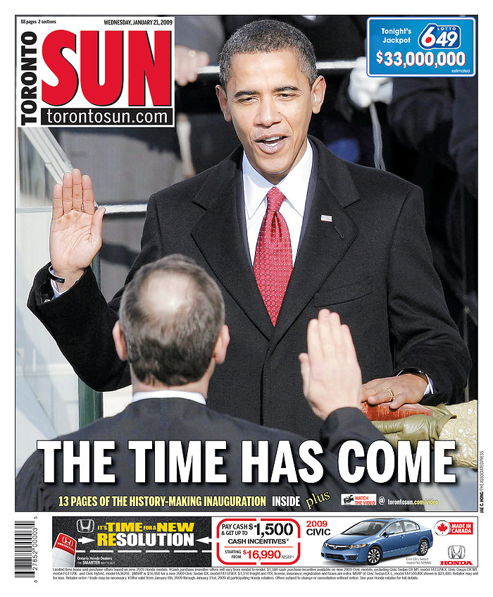 January 20, 2009 Inauguration, and February 19, 2009 Ottawa, Canada