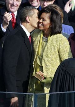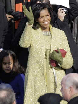 On January 20, 2009 Michelle Obama arrives to the swearing ceremony
