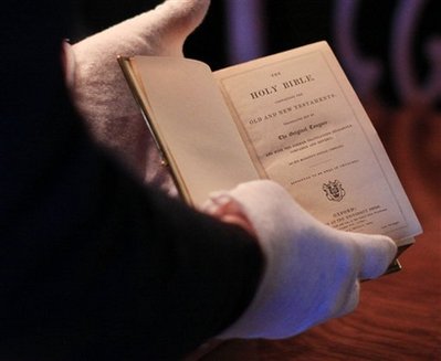 takes the Presidential Oath of Office on Lincoln's Bible used at
