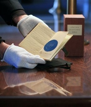 gilt-edged Lincoln Bible is displayed by, and entrusted to, the US Library of Congress.