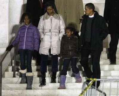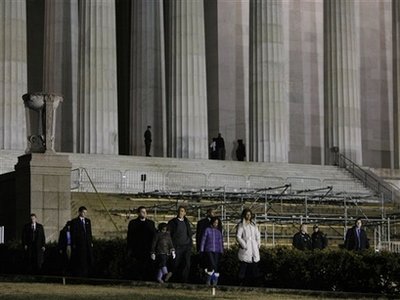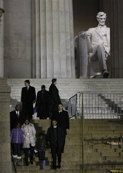 Barack Obama visits the Lincoln Memorial with his family on January 10,