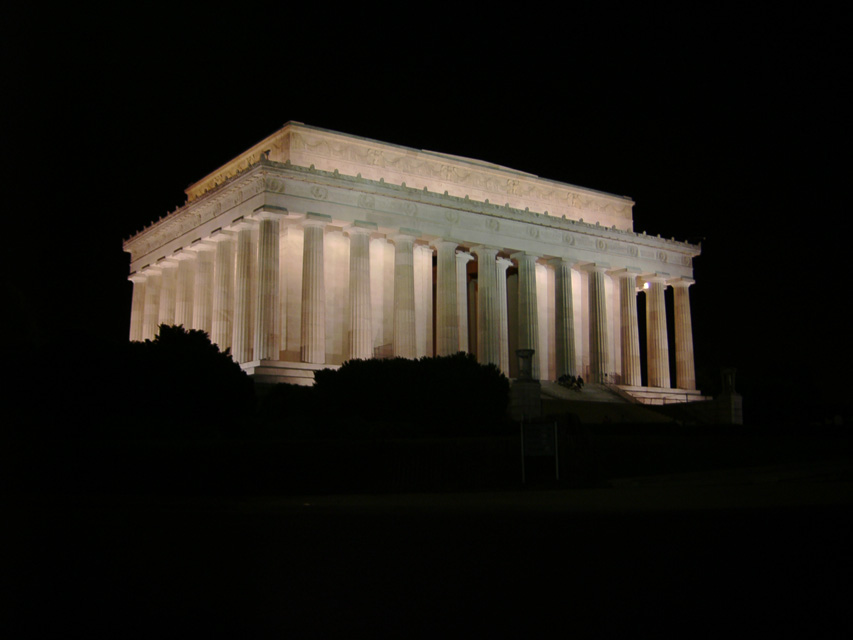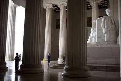Lincoln Memorial image in the evening. Secret Service agents provide heavy security for