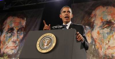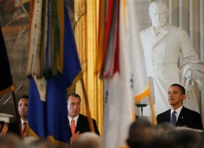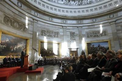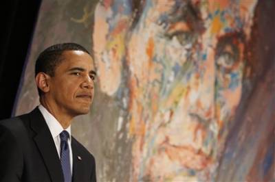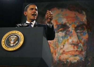 Obama speaks at many functions on February 12, 2009 to celebrate the 200th Anniversary of Lincoln's