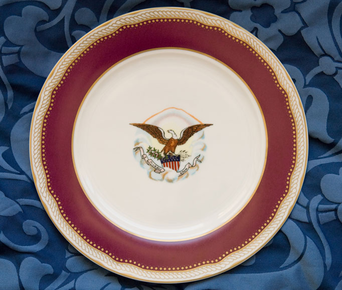 Lincoln's Presidential china. The china's eagle design and red-purple border motif was
