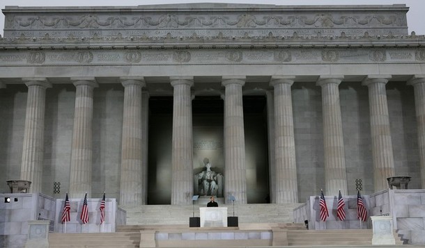 Biden and Obama delivered short speeches at the Lincoln Memorial. Obama