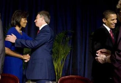 President Barack Obama and First Lady Michelle Obama attend the National Prayer Breakfast in Washington on February 5, 2009.
