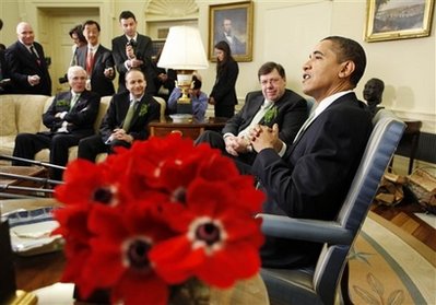 in the Roosevelt Room of the White House on St. Patrick's Day, March 17,